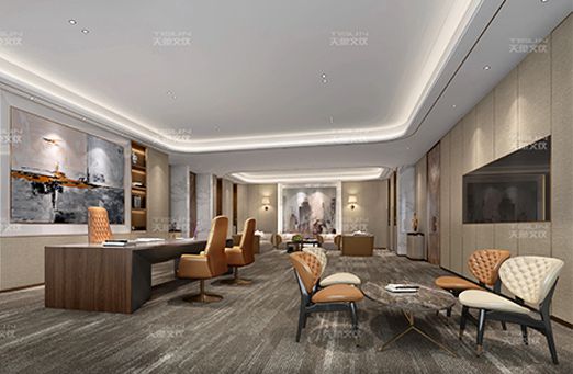 本案利用茶座,休息區(qū),辦公區(qū),娛樂區(qū)等功能分區(qū),與客戶的建筑結(jié)構(gòu)相呼應(yīng),有機地結(jié)合起來。合理而有效地利用空間,使辦公空間的效益最大化,因地制宜,量體裁衣,整體空間的設(shè)計感很強。在該項目中,家具陳設(shè)講究對稱,重視文化意蘊;配飾擅用字畫,辦公家具、精致的工藝品加以點綴更顯主人的品味與尊貴,更具有文化韻味和獨特風(fēng)格。